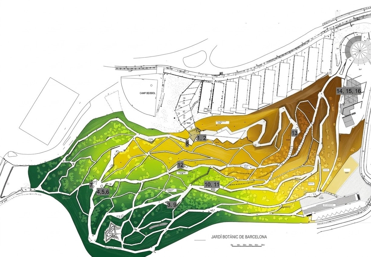 The exhibition finds its home in a venue that is itself a triumph of ecological transformation: the Barcelona Botanical Garden. Designed by architects Carlos Ferrater and Josep Lluís Canosa alongside landscape architect Beth Figueras for the 1992 Olympics, this 14-hectare site on Montjuïc was reclaimed from a former landfill to become a world-class ecological showcase. Its unique triangular mesh structure fractalizes the Mediterranean landscape, organizing flora into specific homoclimatic zones: California, Chile, South Africa, Australia, and the Mediterranean.